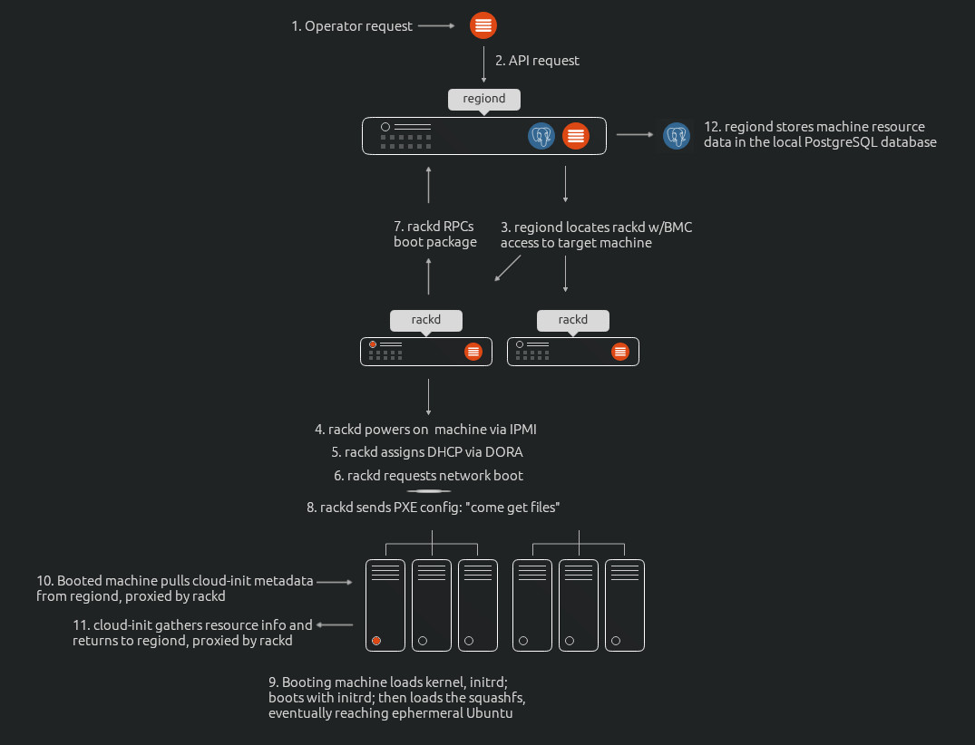 At the core of MAAS are its controllers: region controllers and rack controllers. While the region controller is the interaction hub for operators, the rack controller focuses on delivering high-bandwidth services to the machines.