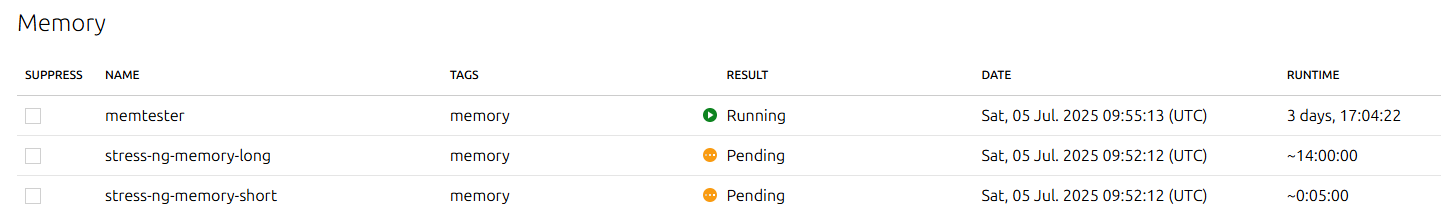 For example, in the UI, when clicking on “Test”, you can choose to run only stress-ng-memory-short.