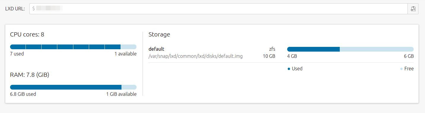 This tab presents a summary of the LXD VM host’s resource usage: