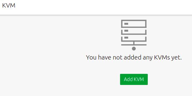 If you want to add a libvirt or LXD VM host to a machine which is already installed, you can do so with the ‘Add KVM’ button: