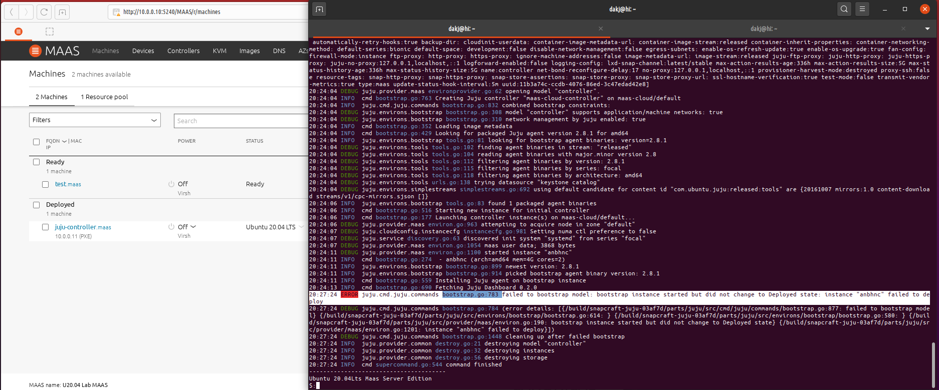 20:27:24 ERROR juju.cmd.juju.commands bootstrap.go:783 failed to bootstrap model: bootstrap instance started but did not change to Deployed state: instance “anbhnc” failed to deploy