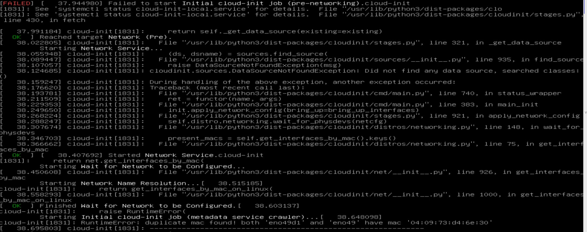 I think that leads to the error I captured from the initial pxe boot. He tries to start the interfaces with the initial config, but fail due to the duplicate mac. I have no idea where to fix this. The servers where deleted through the webinterface.
