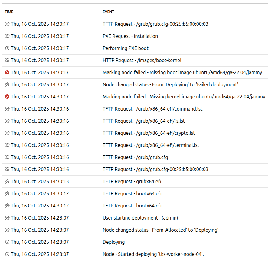 2025-10-17T17:27:45Z maas-http[3405]: 172.16.32.4 - - [17/Oct/2025:17:27:45 +0000] "GET /images/boot-kernel HTTP/1.1" 404 173 "-" "iPXE/1.21.1+ (g5c49e)"