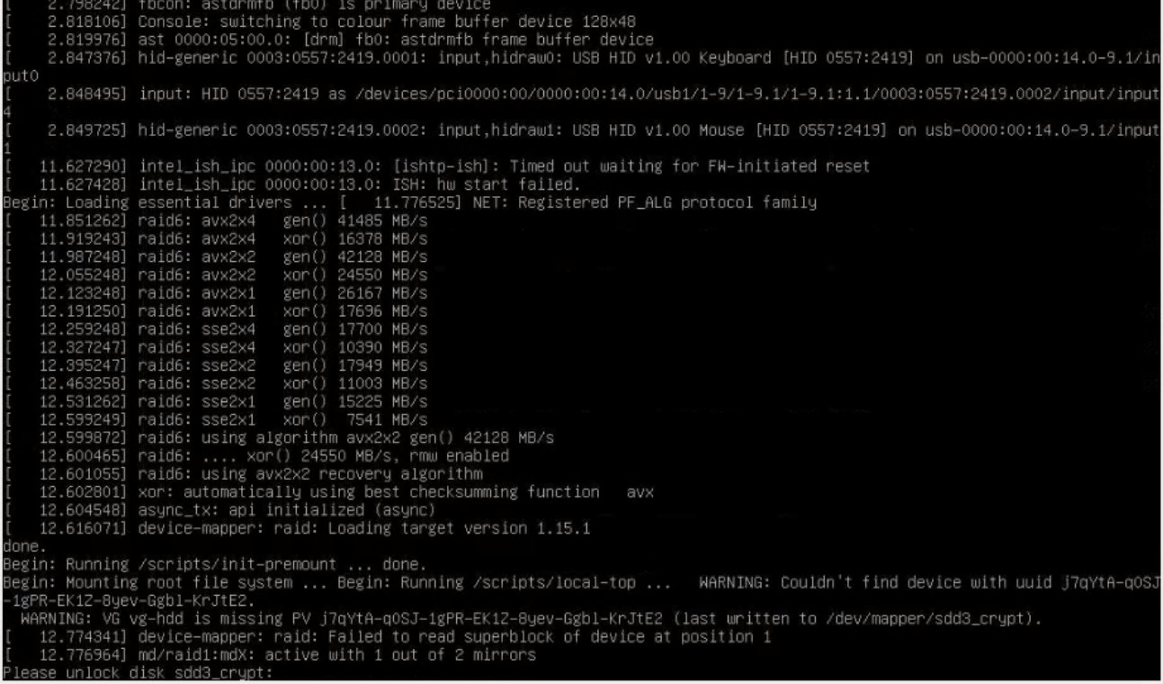 /lib/cryptsetup/askpass "Automatic disk unlock via TPM failed for () Enter passphrase: "