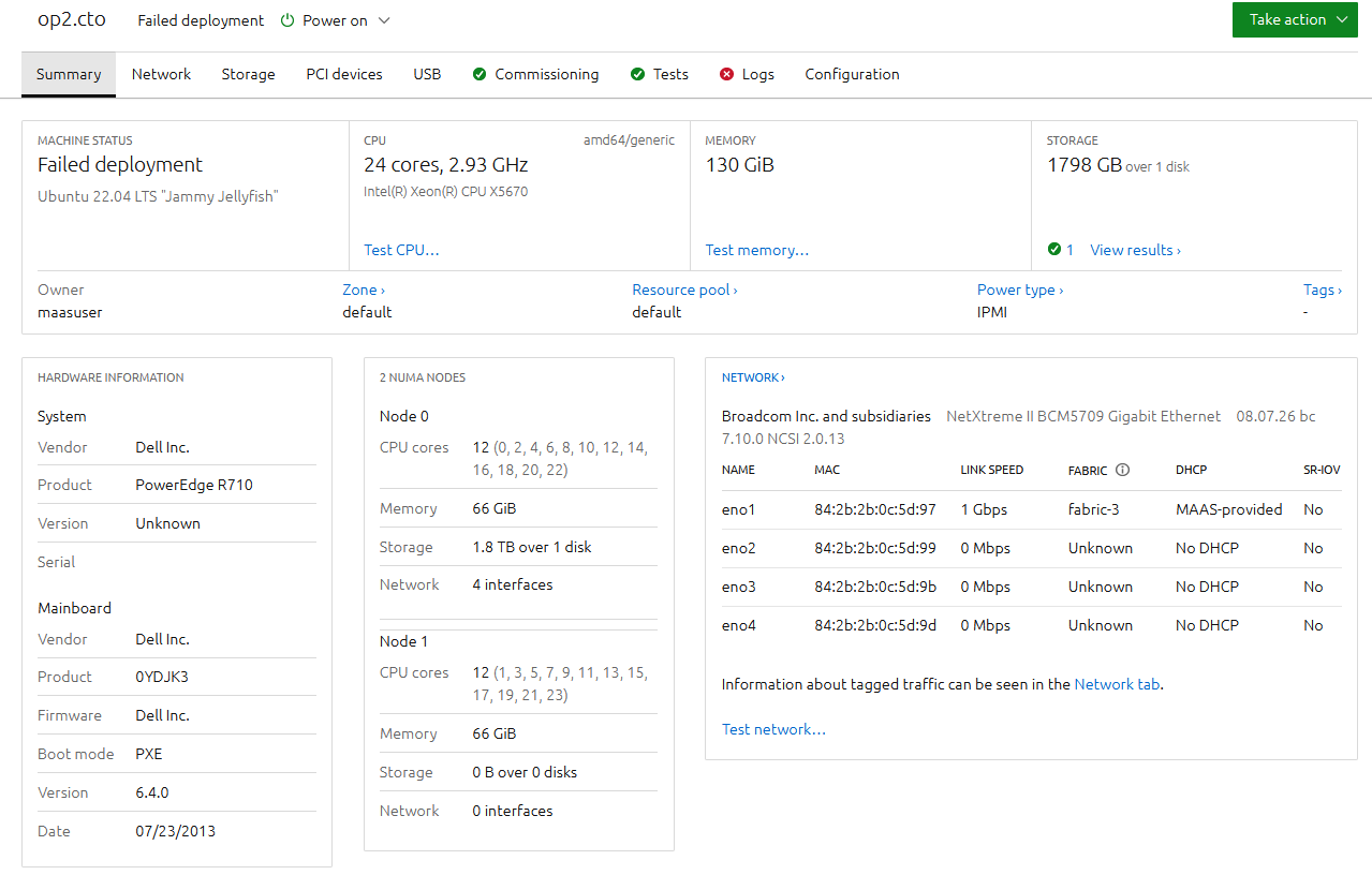 Now when I am trying to deploy it fails and ends up shutting down the server. Logs shown in MAAS are not useful and need your help in troubleshooting the same .