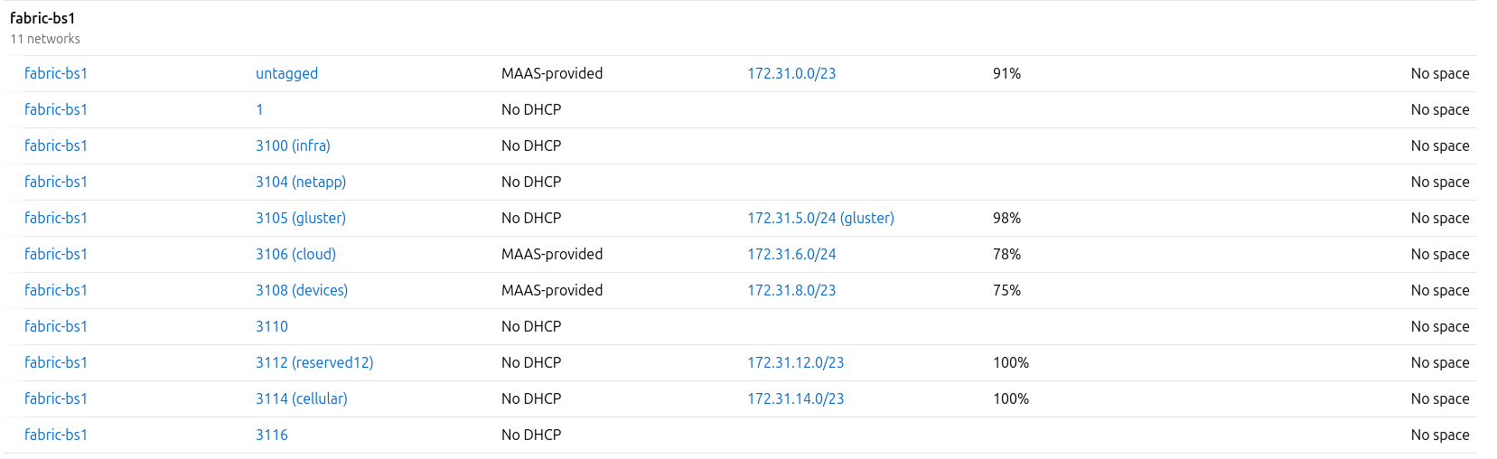 On the Web UI, everything looks good. I have a fabric with VLANs and subnets defined. For some MAAS manages DHCP.
