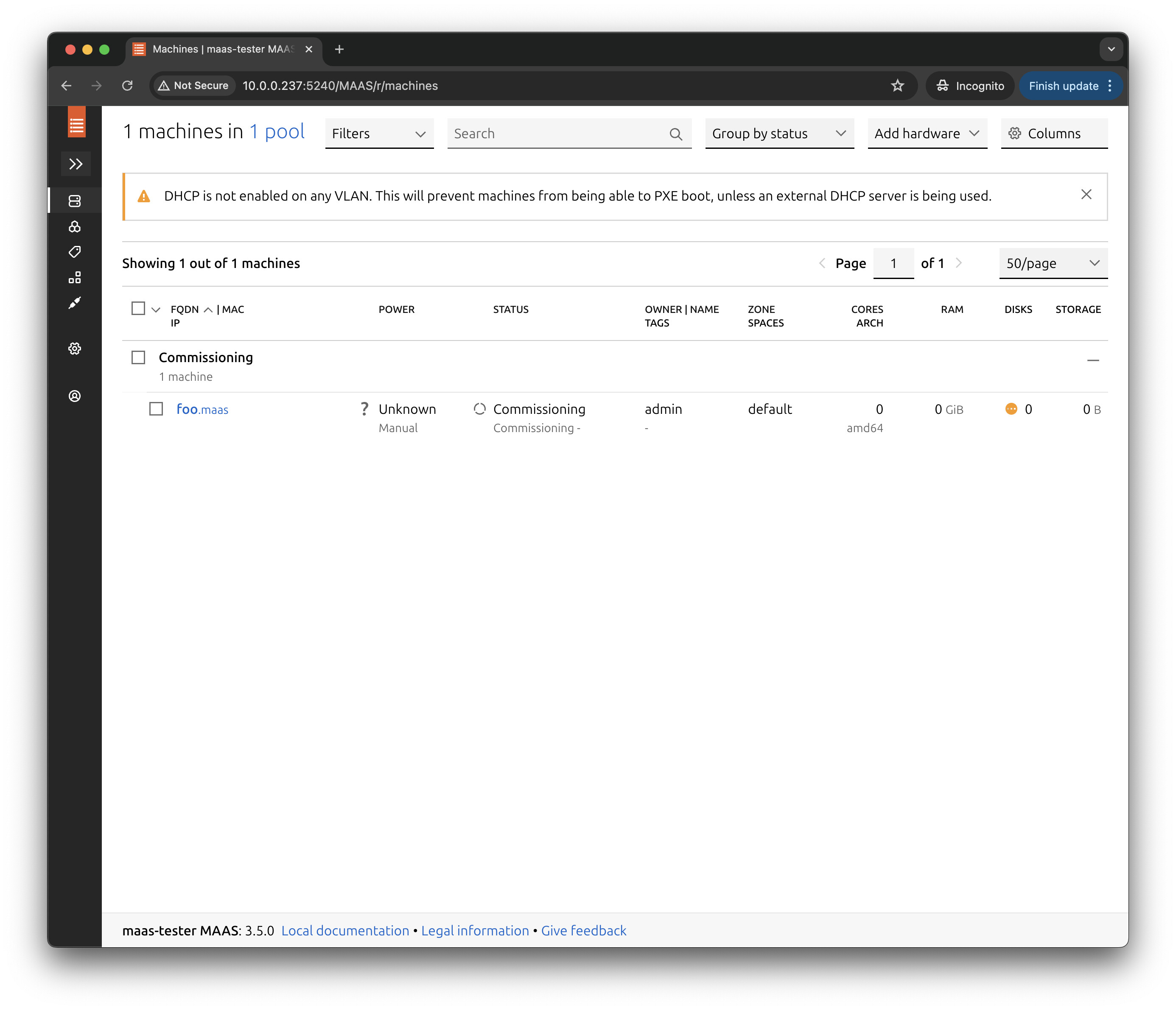 This is a new installation of MAAS 3.5.