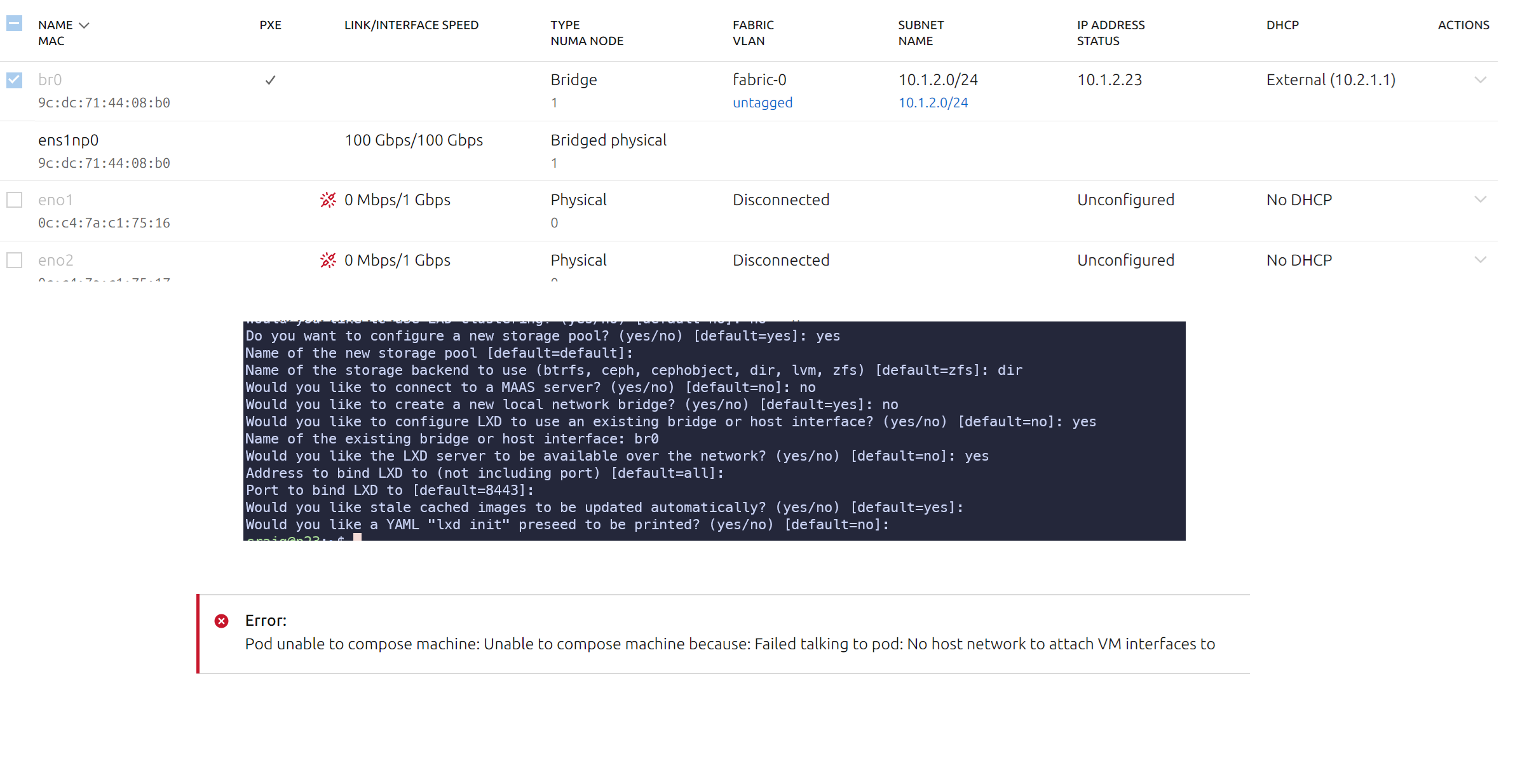But the reason for this whole topic is that you can’t do that, because you lose the ease of MAAS-ui to be able to make virtual machines on your LXD instances. You get the error that the OP is showing in the screenshot.