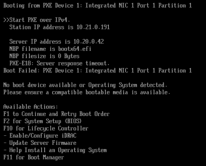 Ok if I wanted to use MAAS Dhcp, I can get the machine to recognize PXE boot now, but I get this error and then the server shuts off (and I have to manually power it on via iDRAC)