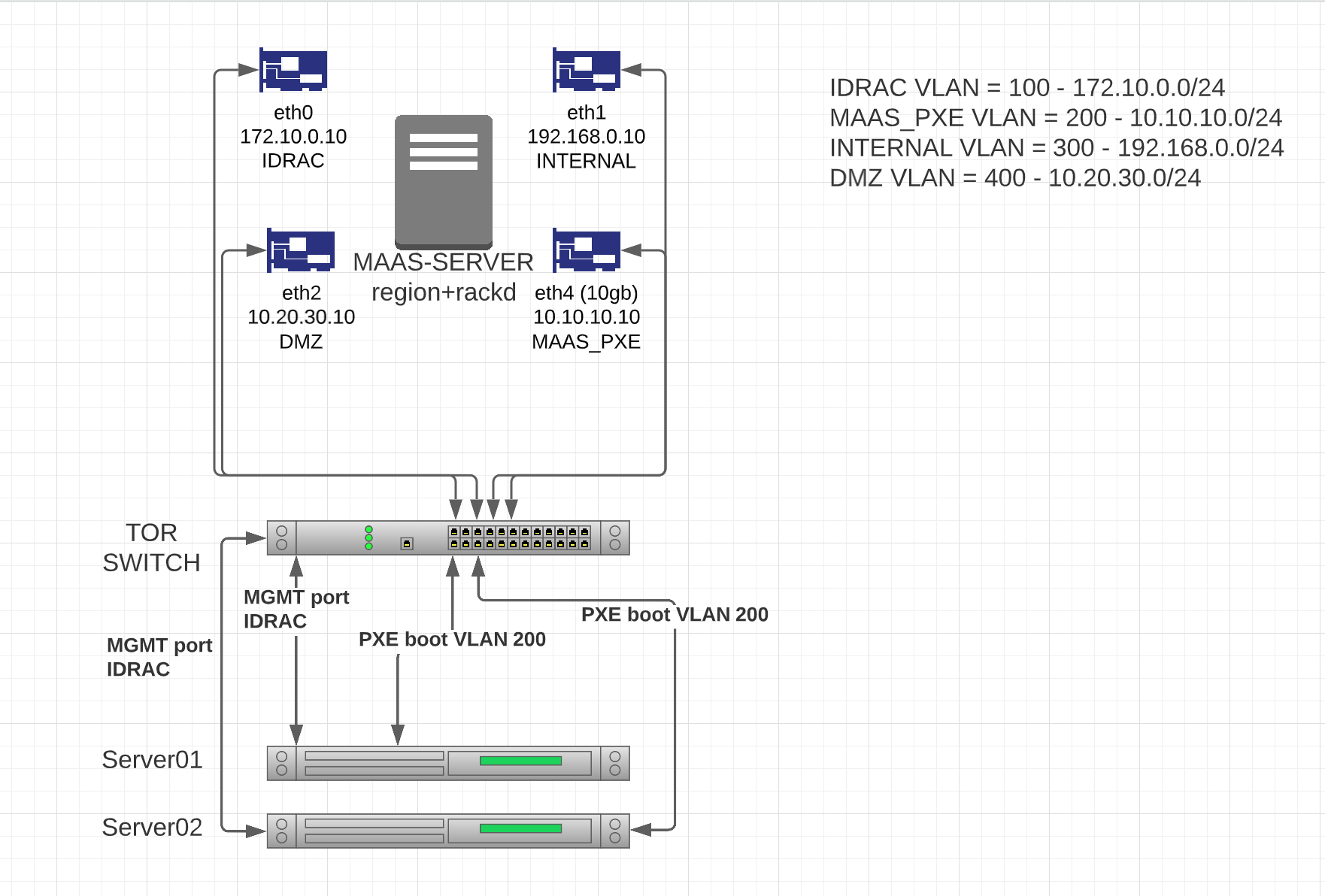 MAAS-SERVER has 4 interfaces, they are all VLANs on the switch, not tagged VLANs + Trunking.
