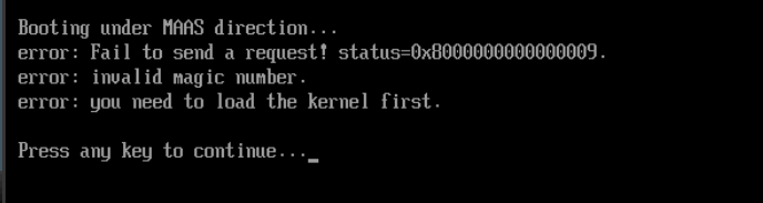 I am trying to boot a baremetal with same subnet of MaaS. I am getting the below issue, during discovery. But I can boot a vm successfully. If anyone knows the fix please reply.