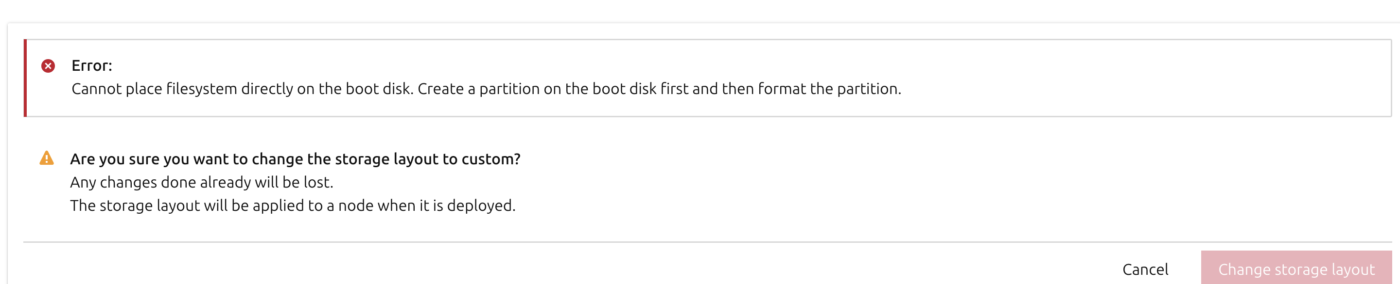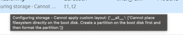However, when I commission the machine, I receive the following error in the MAAS GUI: