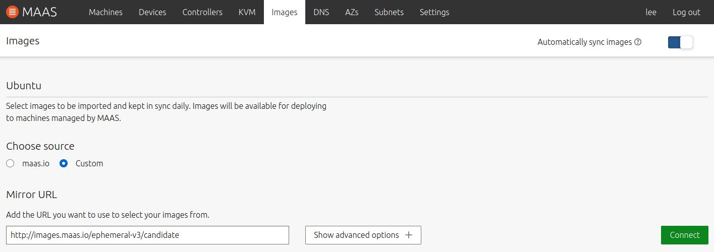 MAAS will write the images to disk in the directory defined by the variable ‘IMAGE_DIR’ above, and the ‘location’ of the new boot source will be: