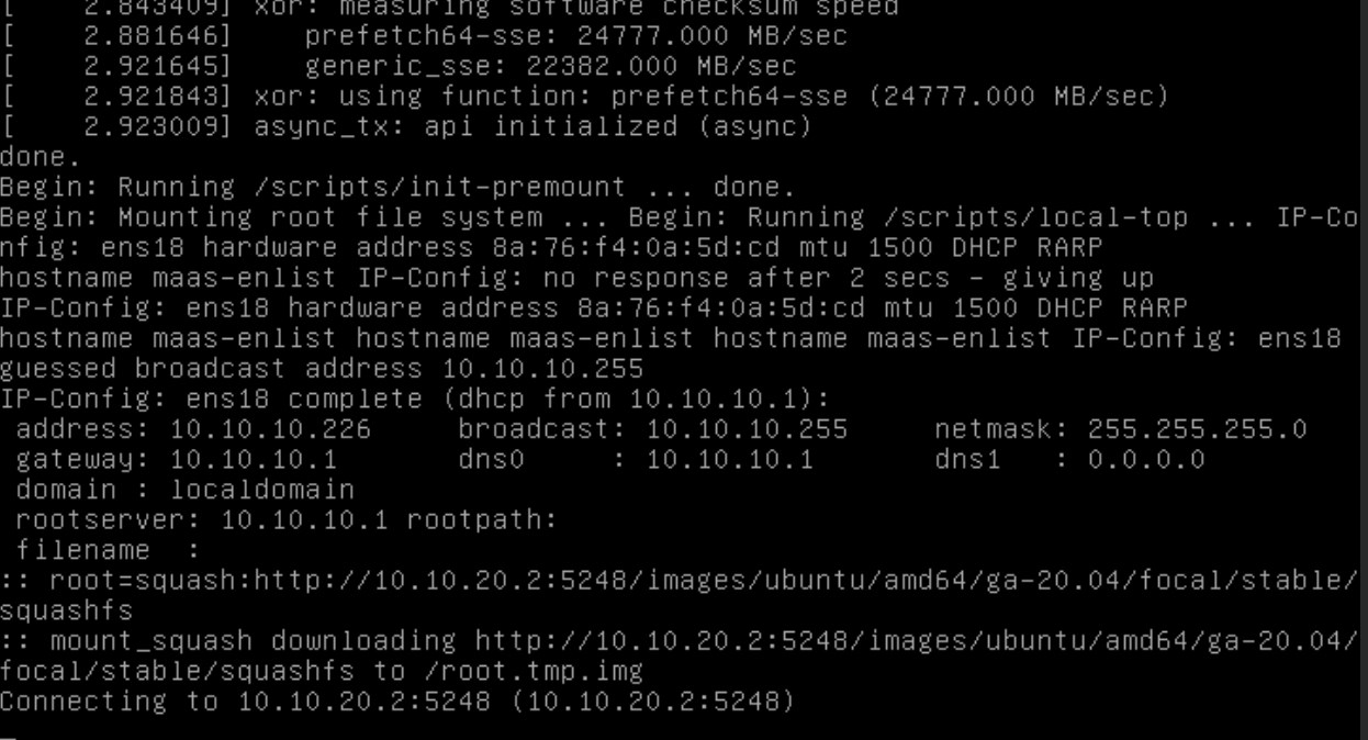 The issue is that if the nic that maas is connected to is not the first hardware ID on the system, (aka, ens18 instead of ens19) it fails during the pxe boot process.