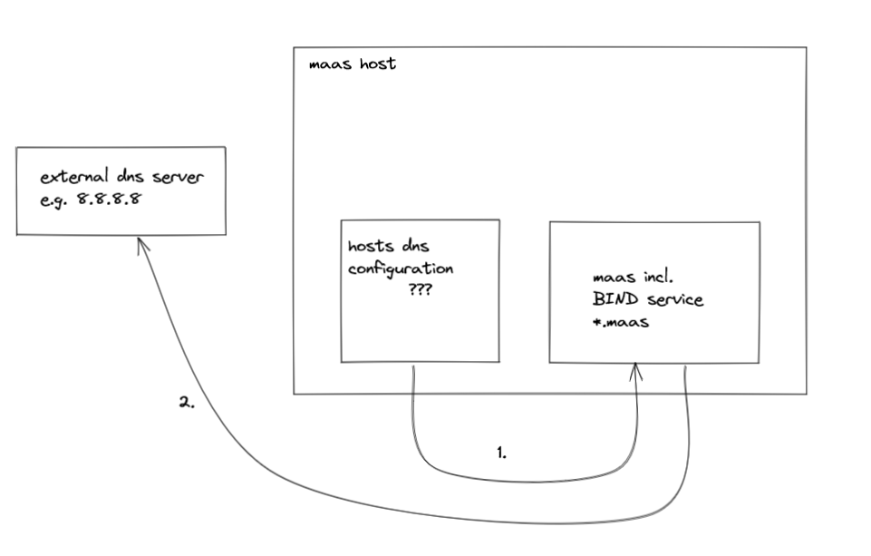 I don’t think it is wrong to point the host at itself for resolution if you are running a DNS resolver such as MAAS. In fact, this is the easiest way for you to be able to resolve maas managed domain names from the maas server.