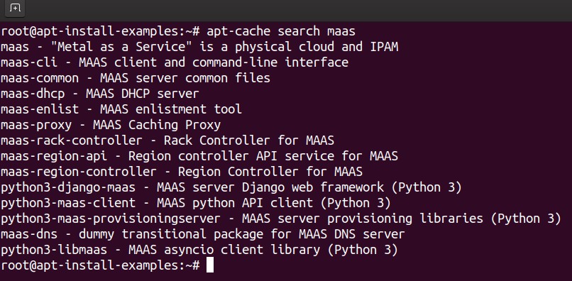 Each of the above packages has its dependencies. That is, each will bring in other MAAS packages not listed above. You can see the full list of MAAS packages with the command: