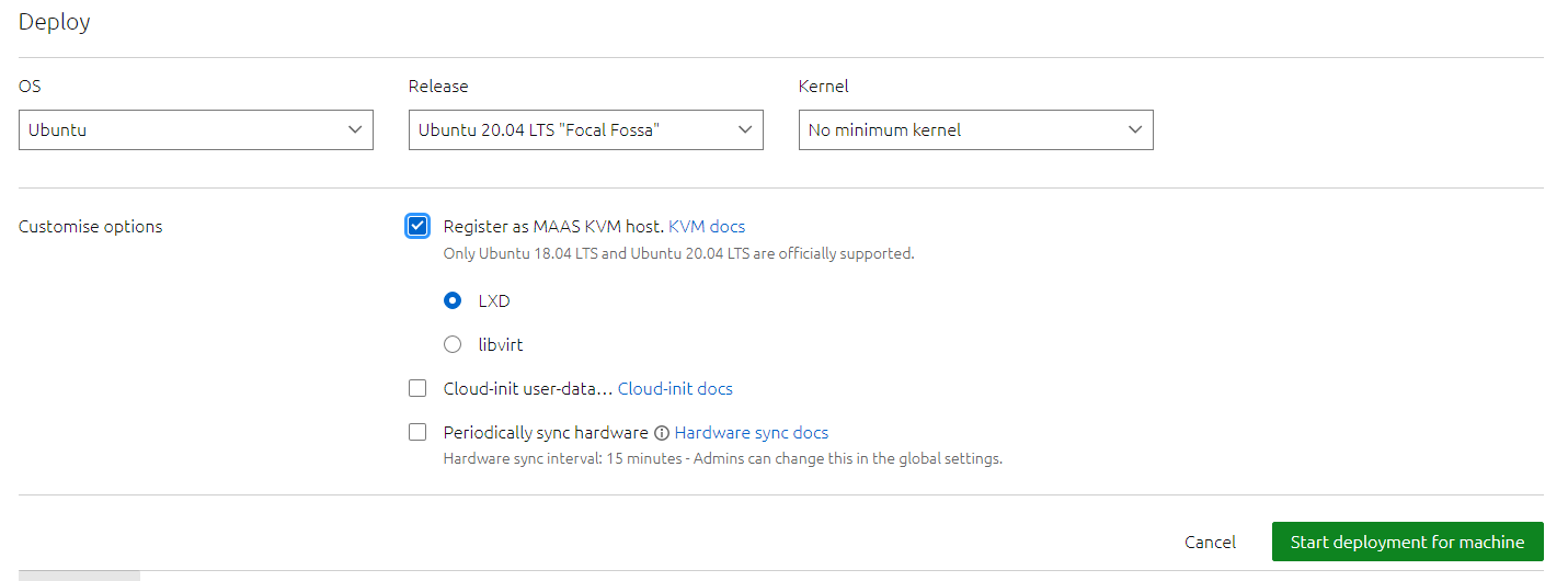 I am deploying a machine as a MAAS KVM Host that uses LXD like the picture below: