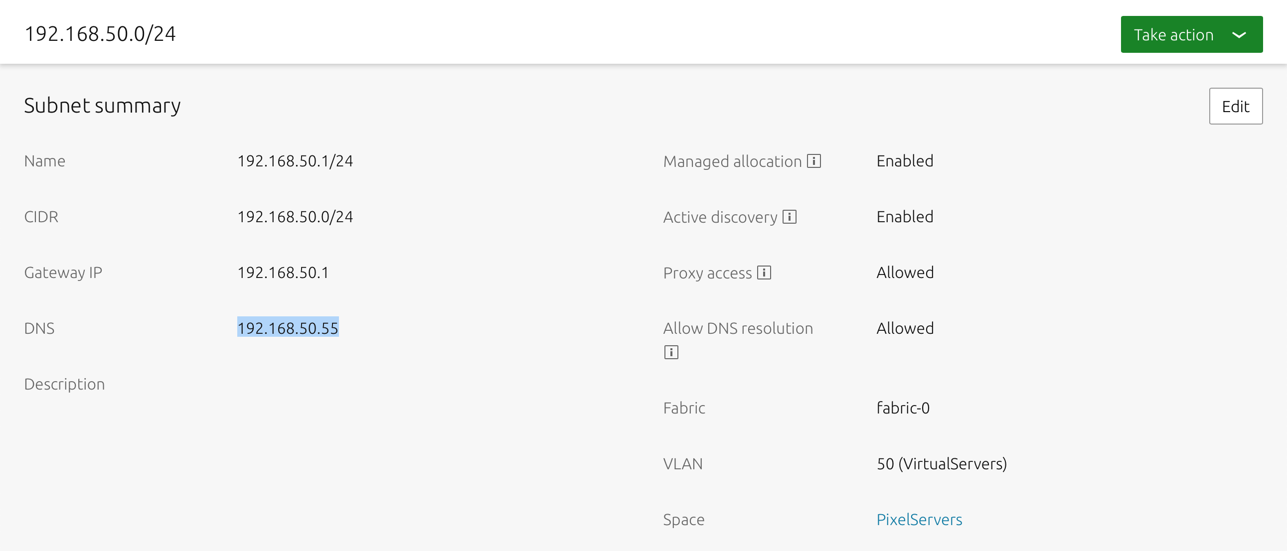 You must be sure to specify a DNS IP in the Subnet Summary. If you enabled the “Allow DNS resolution” the DNS IP must be yours MaaS Region/Rack servers IP.