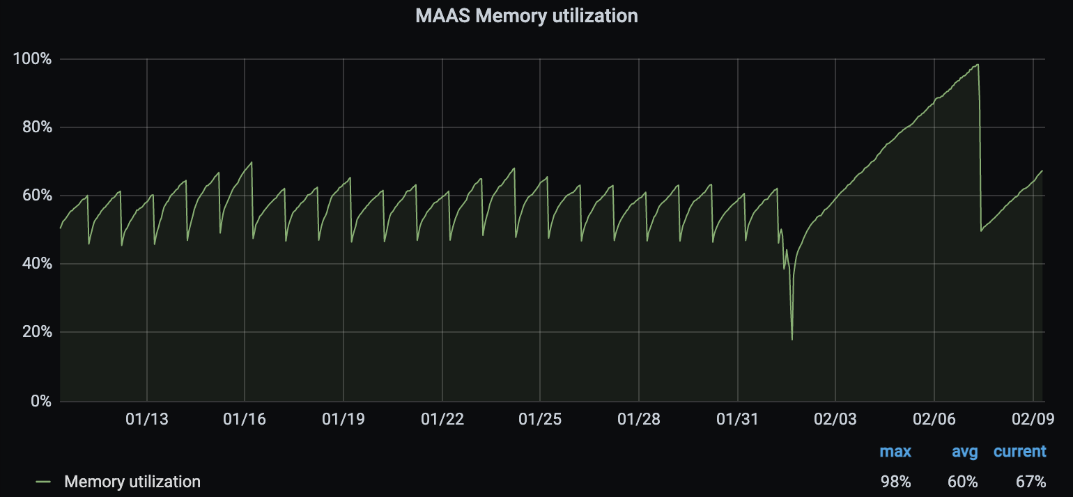 And after that we stoped restart of MAAS region services every night.