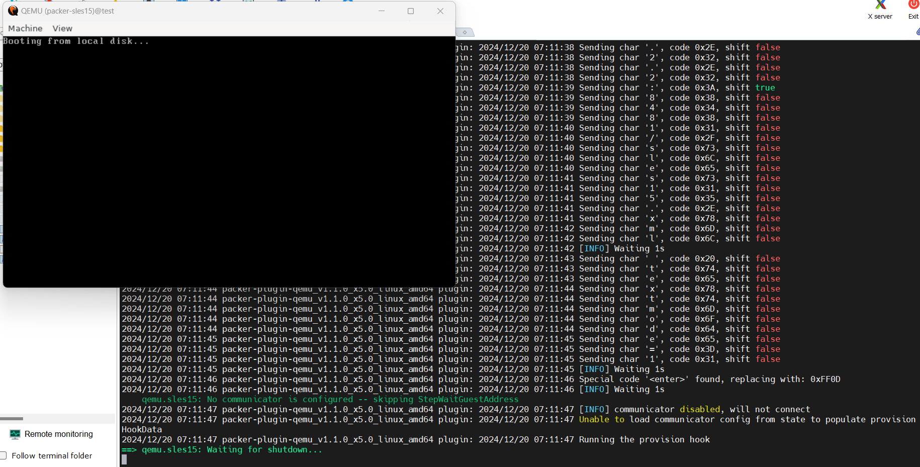 The one time I succeeded was based on the default headless:false, so I don’t know what the normal sles 15 with qemu behavior is.