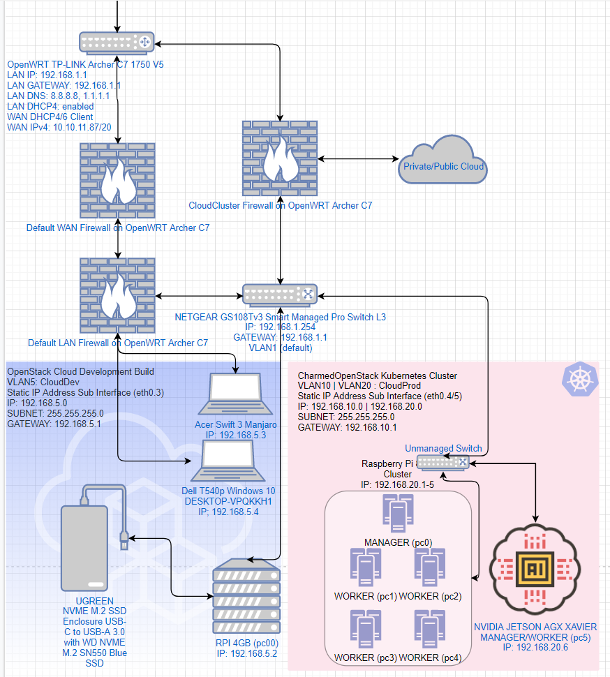 image of my homelab for further clarity. Although I am aware I could run all of this on a single host I am interested in learning about the actual production applications of HA clusters and High Performance Computing. I was planning to use my cluster of 5x RPi4Bs 8GB with SD cards and USB Enclosure SSDs as my production cluster. I have another 4GB RPI4 for development purposes and my home router is currently an OpenWRT flashed TP Link, as indicated in my Network Diagram. My original goal was to learn DevOps and iterate rapid deployments and changes to my Dev PI, then if all was working well, I would deploy the changes to my production cluster.I have followed this PXE RPI4 guide and tried to attempt UEFI legacy booting using my OpenWRT router as a TFTP server. I am not sure if this is the best approach but based on my end goals and current homelab setup I thought at the time of this project that this was the most feasible and easiest option to execute. But after attempting to deploy and execute I am being humbled by so many errors and challenges over the past few months.
