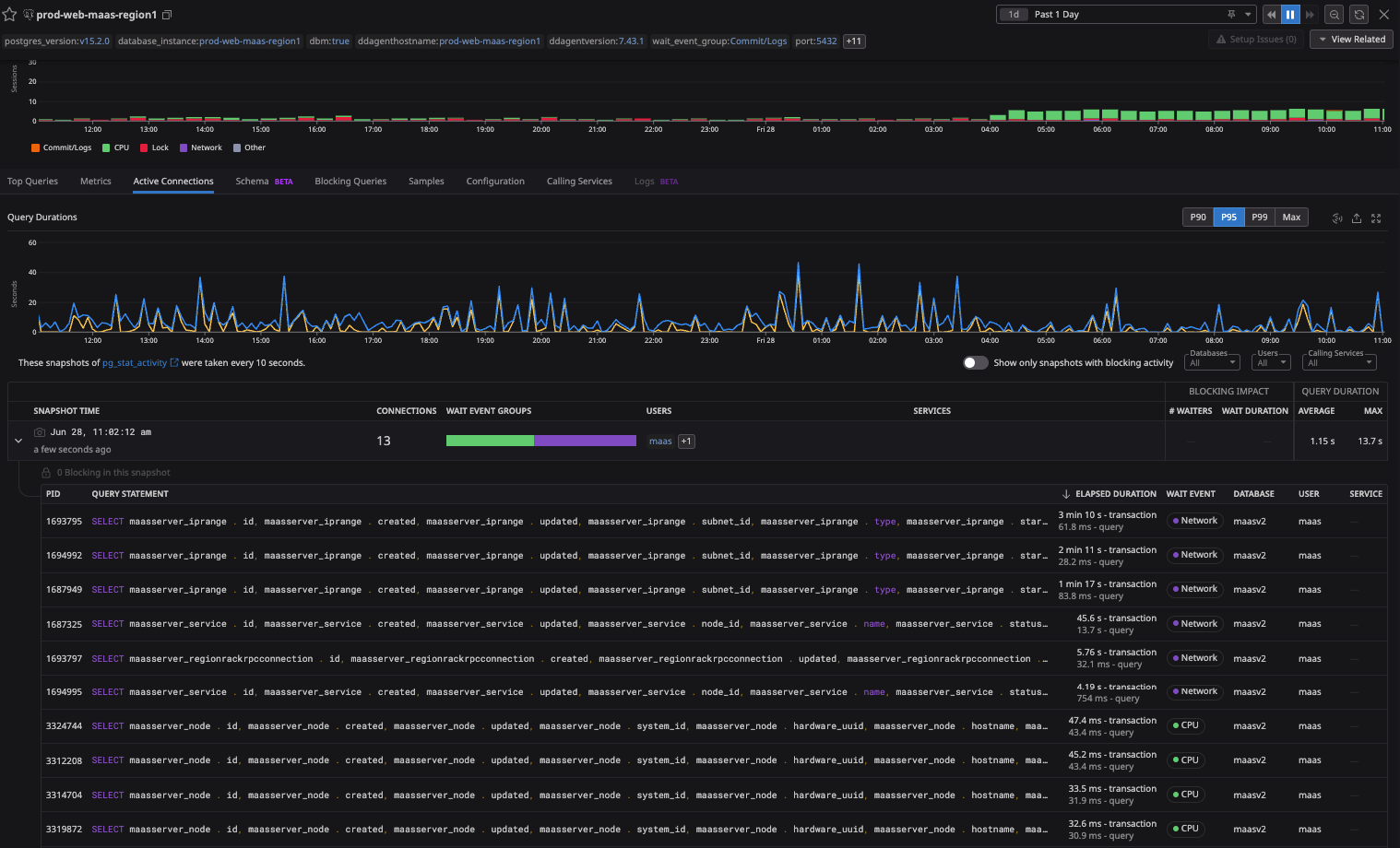 1658140 | maas | maasv2 | active | SELECT “maasserver_node”.“id”, “maasserver_node”.“created”, “maasserver_node”.“updated”, “maasserver_node”.“system_id”, “maasserver_node”.“hardware_uuid”, “maasserver_node”.“hostname”, “maasserver_node”.“description”, “maasserver_node”.“pool_id”, “maasserver_node”.“domain_id”, “maasserver_node”.“address_ttl”, “maasserver_node”.“status”, “maasserver_node”.“previous_status”, “maasserver_node”.“status_expires”, “maasserver_node”.“owner_id”, “maasserver_node”.“bios_boot_method”, “maasserver_node”.“osystem”, “maasserver_node”.“distro_series”, “maasserver_node”.“architecture”, “maasserver_node”.“min_hwe_kernel”, “maasserver_node”.“hwe_kernel”, “maasserver_node”.“node_type”, “maasserver_node”.“parent_id”, “maasserver_node”.“agent_name”, “maasserver_node”.“error_description”, “maasserver_node”.“zone_id”, “maasserver_node”.“cpu_count”, “maasserver_node”.“cpu_speed”, “maasserver_node”.“memory”, “maasserver_node”.“swap_size”, “maasserver_node”.“bmc_id”, “maasserver_node”.“instance_power_parameters”, “maasserver_node”.“power_state”, “maasserver_node”.“power_state_queried”, “maasserver_node”.“power_state_updated”, “maasserver_node”.“last_image_sync”, “maasserver_node”.“error”, “maasserver_node”.“netboot”, “maasserver_node”.“ephemeral_deploy”, “maasserver_node”.“license_key”, “maasserver_node”.“dynamic”, “maasserver_node”.“boot_interface_id”, “maasserver_node”.“boot_cluster_ip”, “maasserver_node”.“boot_disk_id”, “maasserver_node”.“gateway_link_ipv4_id”, “maasserver_node”.“gateway_link_ipv6_id”, “maasserver_node”.“default_user”, “maasserver_node”.“install_rackd”, “maasserver_node”.“install_kvm”, “maasserver_node”.“register_vmhost”, “maasserver_node”.“enable_ssh”, “maasserver_node”.“skip_networking”, “maasserver_node”.“skip_storage”, “maasserver_node”.“url”, “maasserver_node”.“dns_process_id”, “maasserver_node”.“managing_process_id”, “maasserver_node”.“current_commissioning_script_set_id”, “maasserver_node”.“current_installation_script_set_id”, “maasserver_node”.“current_testing_script_set_id”, “maasserver_node”.“locked”, “maasserver_node”.“last_applied_storage_layout”, “maasserver_node”.“current_config_id”, “maasserver_node”.“enable_hw_sync”, “maasserver_node”.“sync_interval”, “maasserver_node”.“last_sync” FROM “maasserver_node” INNER JOIN “maasserver_nodeconfig” ON (“maasserver_node”.“current_config_id” = “maasserver_nodeconfig”.“id”) INNER JOIN “maasserver_interface” ON (“maasserver_nodeconfig”.“id” = “maasserver_interface”.“node_config_id”) INNER JOIN “maasserver_interface_ip_addresses” ON (“maasserver_interface”.“id” = “maasserver_interface_ip_addresses”.“interface_id”) INNER JOIN “maasserver_staticipaddress” ON (“maasserver_interface_ip_addresses”.“staticipaddress_id” = “maasserver_staticipaddress”.“id”) WHERE “maasserver_staticipaddress”.“ip” = ‘43.249.28.206’::inet ORDER BY “maasserver_node”.“id” ASC LIMIT 1 | 2024-06-26 13:43:46.511954+00 | 2024-06-26 13:43:46.511956+00
