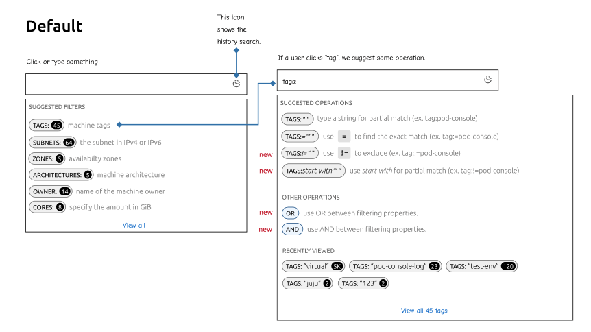 As part of our new layout work, we would like to redesign the search for MAAS UI. We have discovered that our search DSL is not very easy to use and there are some logical operations that was not clear to users.