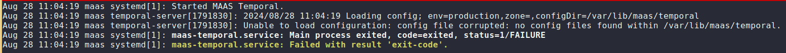 • display log with: sudo journalctl -u maas-temporal.service