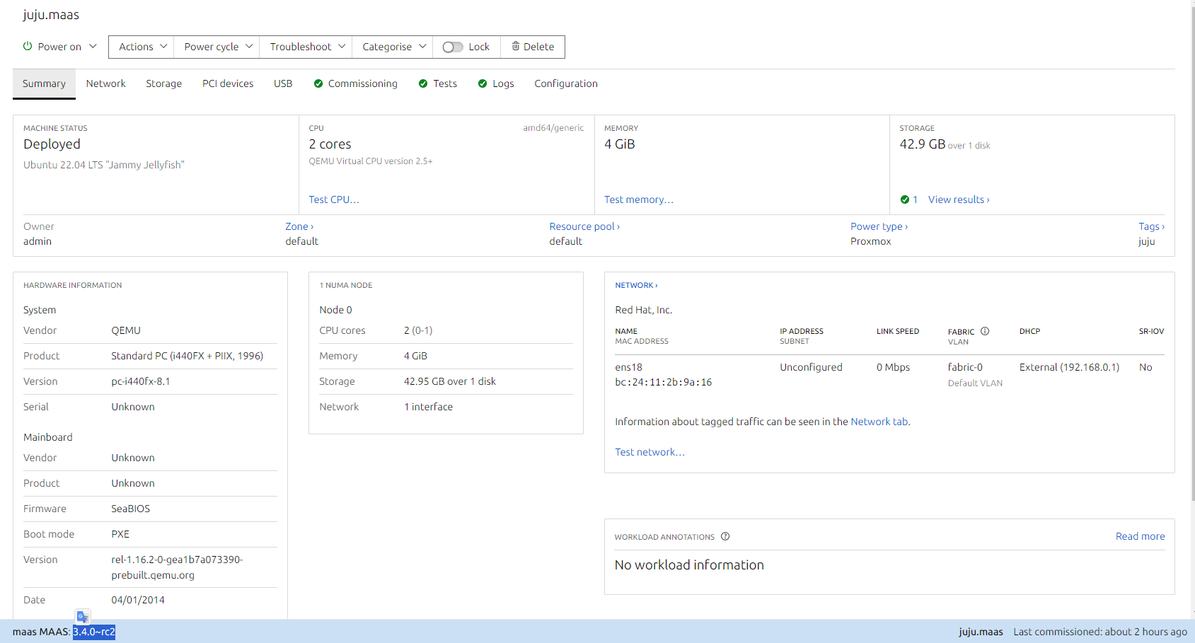 ubuntu@juju:~$ juju bootstrap --bootstrap-series=jammy --constraints tags=juju maas-one maas-controller --debug