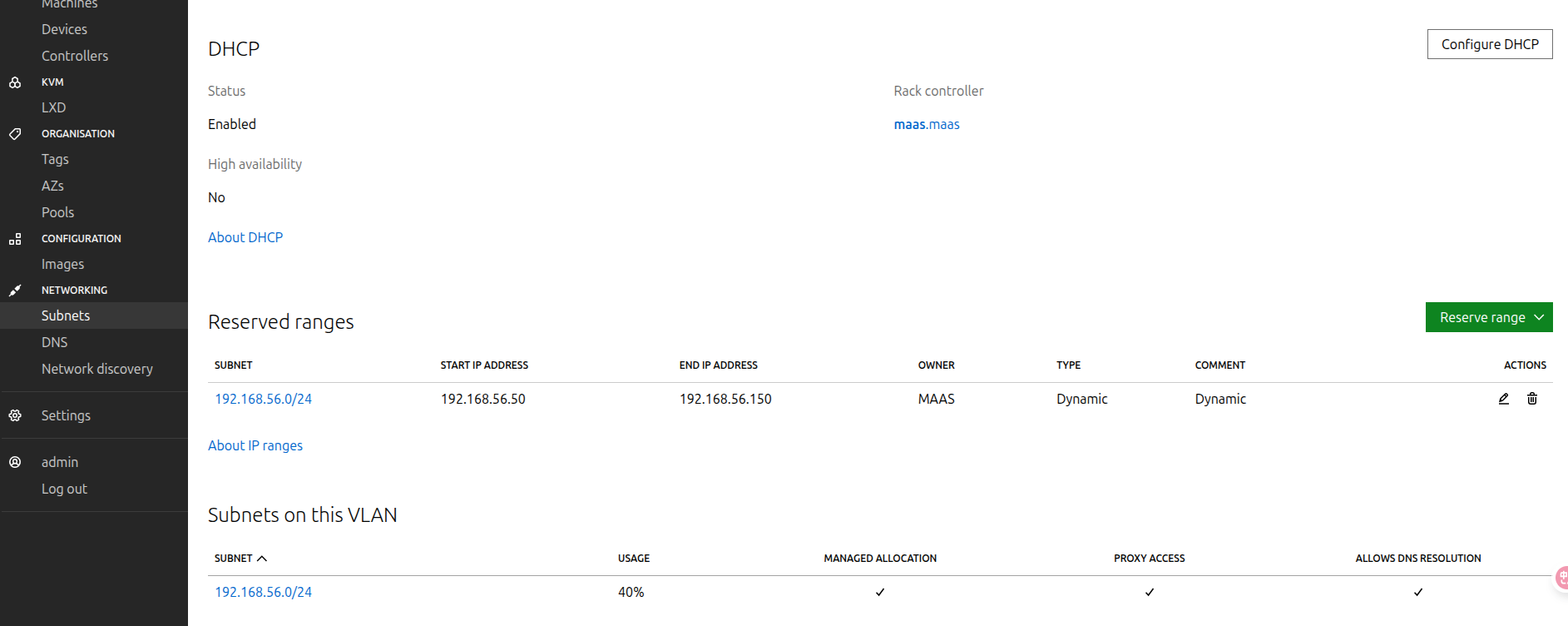 looks like you have another DHCP server on 192.168.56.0/24. If this is the case please keep only the DHCP server of MAAS (or keep only the other one, but you have to configure it accordingly Show and Tell: Using external DHCP with MAAS)