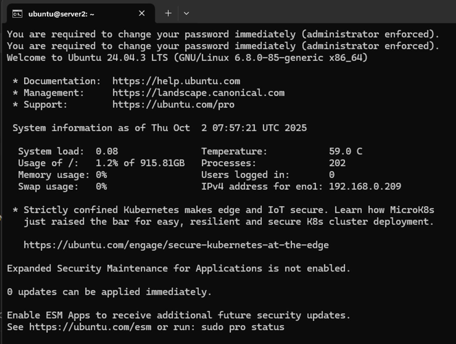 Hi r00ta, here is the screenshot from the first SSH logon to the managed machine, followed by a prompt to change the password.